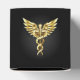Gold polygonal Caduceus symbols on black isolated background. Low poly symbol of medicine.
