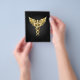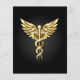 Gold polygonal Caduceus symbols on black isolated background. Low poly symbol of medicine.