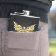The flask itself is fine. It’s a cheap flask, obviously bought in bulk, however am prepared to overlook that. Given that it is a personalized item, I would have liked to have seen gift boxing instead of the generic packaging. Terrible printing, and/or quality. It’s a cheap, tacky vinyl. It is not cut straight and is also applied in a way that it is overhanging the bottom, causing the glue to catch on items and it will eventually roll and tear, damaging the wrap.