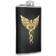 Gold polygonal Caduceus symbols on black isolated background. Low poly symbol of medicine.