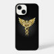 Gold polygonal Caduceus symbols on black isolated background. Low poly symbol of medicine.