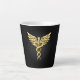 Gold polygonal Caduceus symbols on black isolated background. Low poly symbol of medicine.