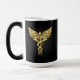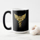 Gold polygonal Caduceus symbols on black isolated background. Low poly symbol of medicine.