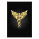 Gold polygonal Caduceus symbols on black isolated background. Low poly symbol of medicine.