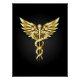 Gold polygonal Caduceus symbols on black isolated background. Low poly symbol of medicine.