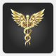 Gold Polygonal Symbol Caduceus Square Sticker