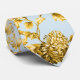 Gold & Powder Blue Modern Botanical Floral Toile Tie