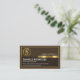 An exquisite brown layered cover is encapsulated by a faux gold rectangular frame with a gold tab near the centre. At the top of the card is a gold power plug logo you can use with the business name resting on a gold tab. Below the gold logo lies your prestigious name, job title and the contact details.