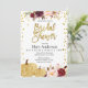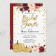 Gold pumpkin bridal shower invitation with red marsala floral, confetti border, and faux gold font.