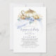 Gold glitter pumpkins dusty blue flowers elegant fall engagement party invitations.