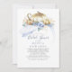 Gold glitter pumpkins dusty blue flowers elegant fall bridal shower invitations.