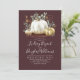 Fall burgundy red wedding invitations feature charming hand-painted gold and white pumpkins