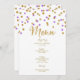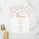 Wedding dinner menu in glamourous gold purple glitter confetti pattern. (please note glitter is print only)