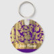 Gold & purple floral damask pattern key ring