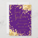 Gold Purple Sweet 16 Glitter Confetti Floral Invitation