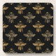 These gold queen honey bees with crowns are on a black background. Make sure to check out the matching throw pillows!