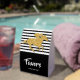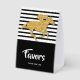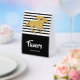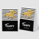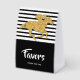 Derby bridal shower or party FAVORS paper table tent sign features a faux gold glitter racehorse on black and white stripes with details in chic lettering. MATCHING items in our collection.