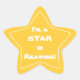 A bright gold star sticker with an interior white line star, and the words in white, "I'm a star in reading!" The text is fully customisable, so you may make it say whatever you'd like. A bright and fun way to recognise a good student.