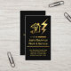 Overleaf, at the top is the gold logo followed by your prestigious name, the contact details and a slogan option to publicise your services. All lettering are in faux gold.