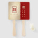 Minimalist Single Lined Red Rectangle Double Happiness On A Faux Matt Gold Foil Paper Background, Double Sided Chinese Wedding Party Favour Hand Fan.