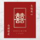 Minimalist Single Lined Faux Gold Foil Rectangle Double Happiness On A Solid Red Background, Chinese Wedding Party Wine / sparkling wine / Liquor Bottle Label.