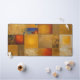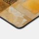 A captivating mixed media masterpiece blends geometric abstraction with dreamlike elements. Rich textures, vibrant earthy tones, and warm light create an enchanting design against a backdrop of gold.