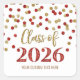 Custom name class of 2026 graduation stickers with gold and red confetti pattern with modern lettered style text.
