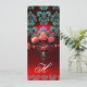 GOLD RED CORAL ROSES, BLUE BLACK DAMASK MONOGRAM INVITATION