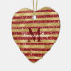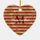 Gold Red Glitter Stripes Monogram Ceramic Ornament