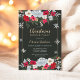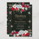 Celebrate the season in style with this elegant Christmas dinner party invitation. Featuring a beautifully framed design with festive gold, red and green florals and delicate snowflake accents on a dark green background, this invitation sets the perfect tone for a warm and welcoming holiday gathering. The clean layout and well-balanced spacing make it easy to personalise the details, while the vibrant colours add a touch of holiday cheer. Ideal for both formal and casual events, this invitation is sure to impress your guests and get them excited for a festive evening.