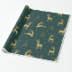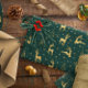 Prancing and dancing reindeer among stylised Christmas trees in a faux gold foil affect are sprinkled with snowflakes and stars in this elegant wrapping paper design. Choose any background colour to replace the deep green we've chosen as an example, or leave as is.