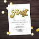 This fun, retro-inspired 40th birthday party invitation features a classic white background with faux gold retro script and simple typography for the invitation text. The script on the front says "Forty". Customize this design further by adding a photo or additional text to the back simply by using the "design tool".