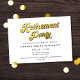 This fun surprise retirement party invitation features a classic white background with retro faux gold script and simple typography for the invitation text. The script on the front says "Retirement Party. Customize this design further by adding a photo or additional text to the back simply by using the "design tool".