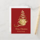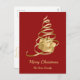 Gold Ribbon Christmas Tree Present- red background, gold ribbon christmas tree with gold present