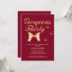 An elegant 30th birthday invitation featuring a cute gold ribbon and the modern typography "Gorgeous Thirty", on a burgundy background.