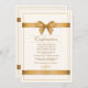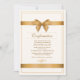 An elegant invitation with an off-white background and two bands of deep-gold ribbons, one of which is tied in a bow. Perfect for any happy celebration.