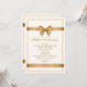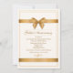 An elegant invitation with an off-white background and two bands of deep-gold ribbons, one of which is tied in a bow. Perfect for any happy celebration.