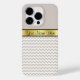 This sophisticated phone case features a stylish sand grey colour and white chevron pattern, with your custom name gold ribbon in chic typography. Protect your phone in style with this custom case!