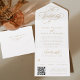 This gold and white all in one wedding invitation featuring elegant and romantic swirly calligraphy lettering with a RSVP and a QR Code. For more advanced customisation of this design, please click the BLUE DESIGN TOOL BUTTON above!