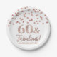 60 and fabulous birthday party plates with gold and rose glitter pattern confetti.