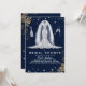 Gold Rose Diamond Wedding Dress Bridal Shower Blue Invitation