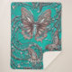 Gold Rose Teal Butterfly Personalised Name Sherpa Blanket