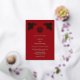 This Chinese wedding invitation features a real gold foil double happiness symbol and rose gold roses on a dark red background. Chinese wedding invitation or tea ceremony invitation.
