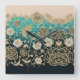 Gold Roses with Turquoise Background Wall Clock