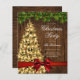 Elegant Christmas Holiday Party invitation with Program and Menu featuring Rustic Christmas Tree.
