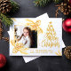 Gold Rustic Pine Wood Holiday Photo Christmas Card