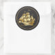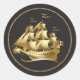 A stunning golden tall-masted sailing vessel over a contrasting black background.