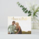 Gorgeous faux gold foil typography on the front of this designer postcard which you can upload into with your own engagement/save the date photo portrait. Easily and quickly personalise this designer professionally printed save the date postcard here and now by just typing over the example text and adding your own photograph. Elegant, chic, simple and classy gold script/cursive typography.