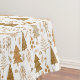 There's a fun Scandinavian style Christmas tree pattern on this cute Holiday table cloth. The gold artistic trees are in various designs and patterns, and placed on a white background. Elegant and fun for your Holiday table!