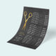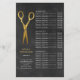 A stylish product/service menu featuring chic gold scissors on a chalkboard background. An elegant and professional design that projects a confident professional image. Designed by Thisisnotme©